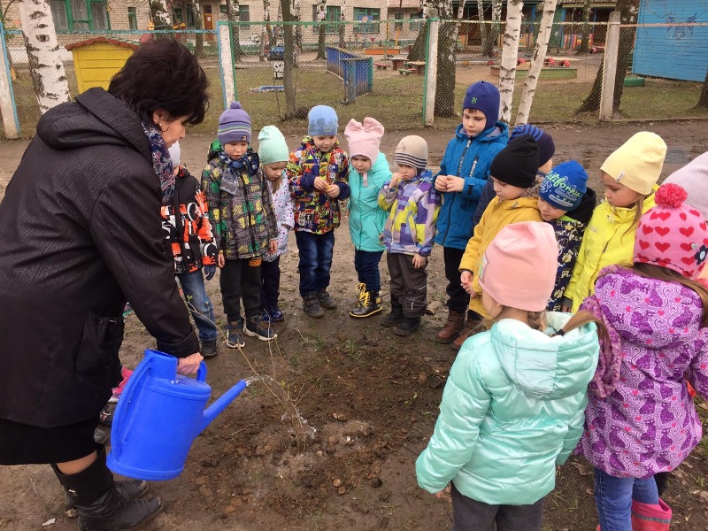 Педагоги совместно с родителями и детьми высадили кусты сирени перед зданием детского сада.