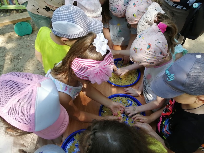 На прогулочных зонах детского сада все вместе выполняли различные задания, отгадывали загадки и ребусы, знакомились с появлением имен и фамилий русского народа, его обычаями и традициями, играли, танцевали и веселились.