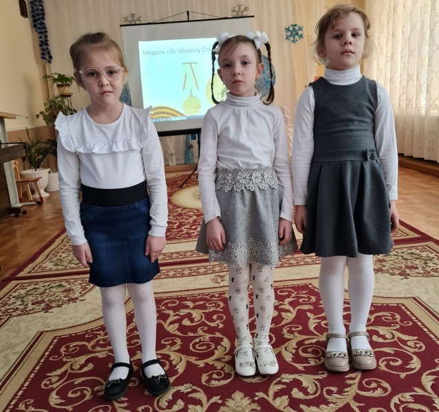 3 февраля для детей старшего дошкольного возраста был организован музыкально-литературный праздник. Дети из групп "Ромашка", "Удальцы", "Кораблик" и "Теремок" посмотрели презентацию о тяжелых днях сталинградской битвы, узнали какой дорогой ценой досталась победа, как выстоял город под натиском фашистов. Дошколята слушали и исполняли песни военных лет, читали стихи о городе-герое и его отважных защитниках. Завершился праздник минутой молчания.