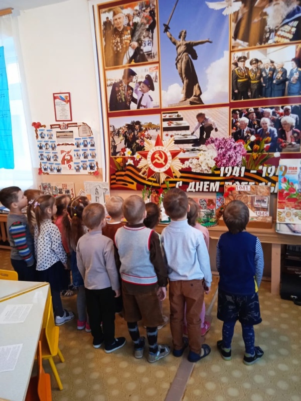 Малыши из группы "Звездочка" рассматривали иллюстрации и книги о войне. Дети средней группы "Колокольчик" посетили музей ДОУ "Защитники Отечества", а воспитанники старшей группы "Удальцы" узнали о жизни детей на войне, познакомились с рассказами из книги "Салют, Пионерия", повествующими о подвигах Лени Голикова и Зины Портновой. В группе "Ромашка" дети познакомились с военной техникой периода ВОВ и помогали в создании экспозиции "Дом Павлова". Ребята из группы "Теремок" сделали "цветок мира".