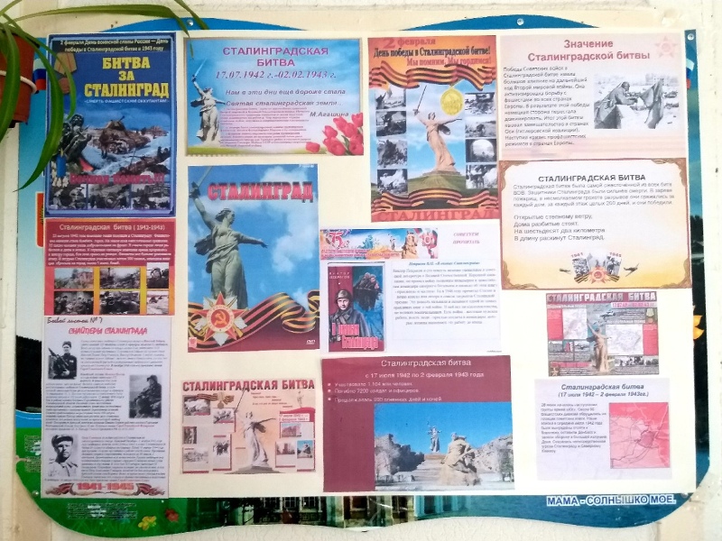 В преддверии памятной даты педагоги нашего сада организовали выставку детских работ "Сталинградская битва в рисунках детей"; в группах оформили уголки, посвященные 80-летию Сталинградской битвы и экспозицию Дом воинской славы "Дом Павлова".