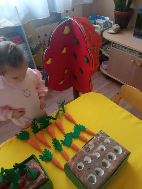 В каждой возрастной группе прошли мероприятия, согласно девизу. Малыши раннего возраста из группы Солнышко играли с муляжами овощей и фруктов, в дидактическую игру "Чудесный мешочек".