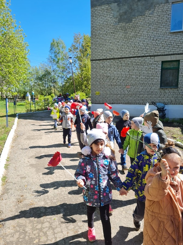 В рамках мероприятий, посвященных 78-летию со Дня Победы в Великой Отечественной войне, в нашем детском саду прошел смотр песни и строя "Красив в строю, силен в бою". В нем приняли участие дети средних групп "Зайчонок" и "Колокольчик", старших групп "Ромашка" и "Удальцы" и подготовительных к школе групп "Кораблик" и "Теремок". Дошколята исполнили песни военных лет и современные песни о Великой Победе. Все конкурсанты выступили достойно и были награждены дипломами. Затем все участники смотра - конкурса приняли участие в Параде Победы и прошли торжественным маршем вокруг сада. Мероприятие было направлено на воспитание у подрастающего поколения чувство долга, патриотизма и любви к своей стране, уважение к памяти дедов и прадедов, победивших фашизм!