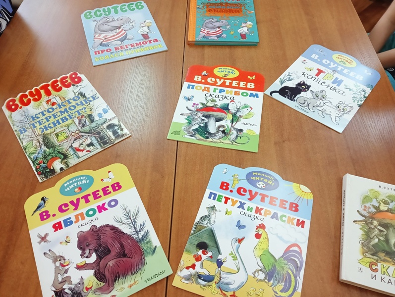 В библиотеке №6 с дошкольниками группы Удальцы прошел час сказки "Художник – сказочник-волшебник". Главный библиотекарь Раиса Мусина рассказала детям о творчестве знаменитого художника-сказочника Владимира Григорьевича Сутеева, которому 5 июля исполнилось бы 120 лет. Это один из самых известных художников детской книги. Он писал сказки правой рукой, а левой рисовал к ним картинки. На его сказках выросли несколько поколений читателей.