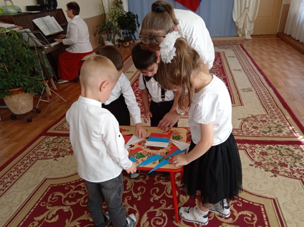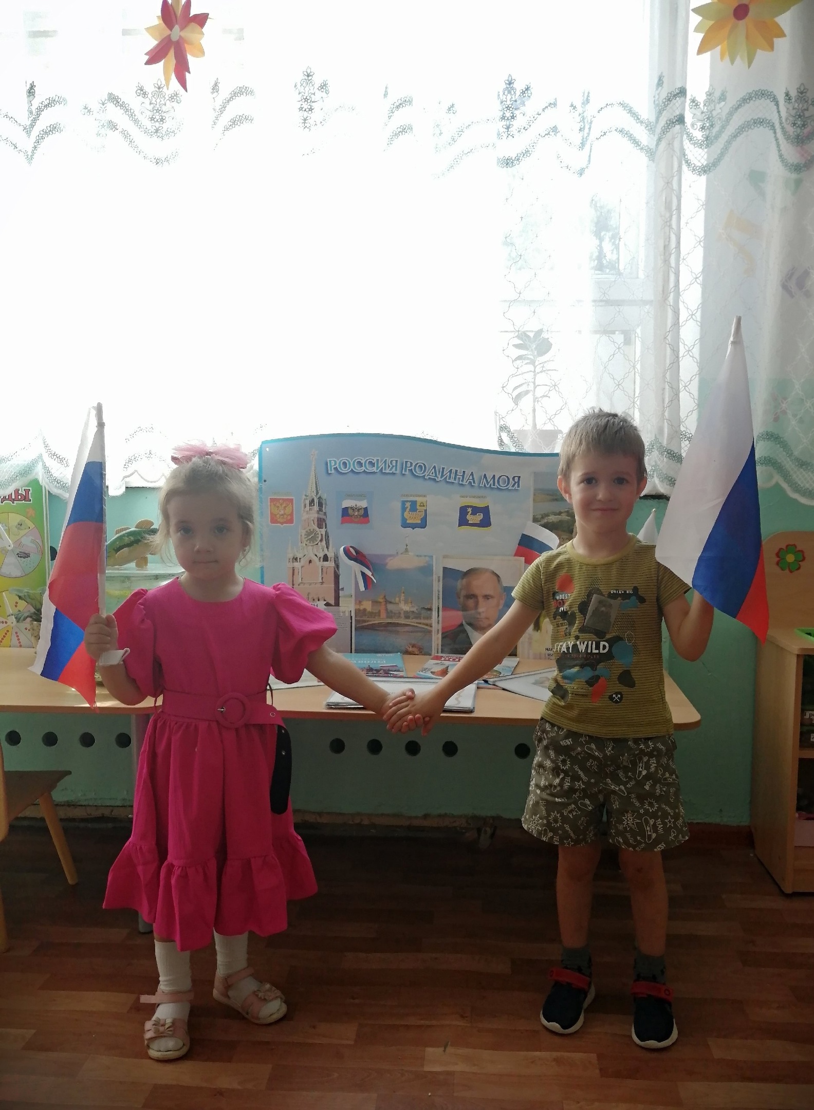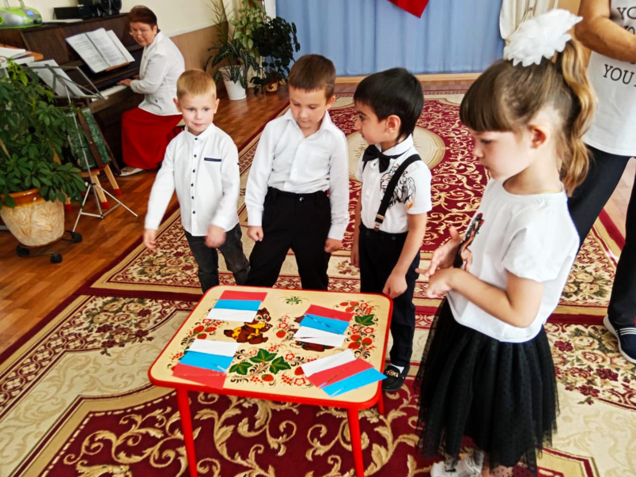 Утро этого дня было насыщено, с большим нетерпением ребята готовились к празднику – украшали группы, прогулочные веранды символикой Российского флага. Во всех группах были проведены комплексные игровые беседы "Один флаг – одна Россия", "День Российского флага", выполнена продуктивная деятельность "Флаг России". А совместная игра "Белый. Синий. Красный" прошла весело и задорно! Дети научились отличать и находить Российский флаг среди множества других, получили и закрепили представления о назначении государственной символики, узнали о символическом значении цветов флага нашей Родины.