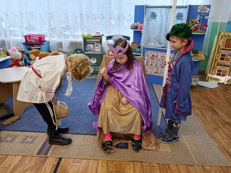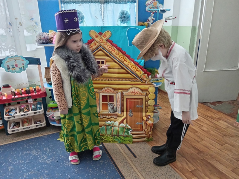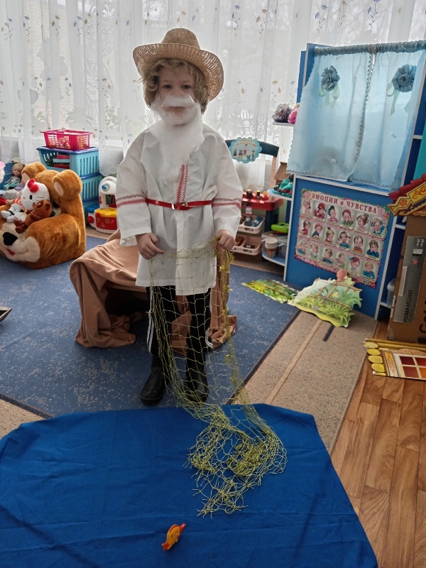 А для закрепления представлений о героях сказок дети разыграли небольшие отрывки из сказки "О рыбаке и рыбке".