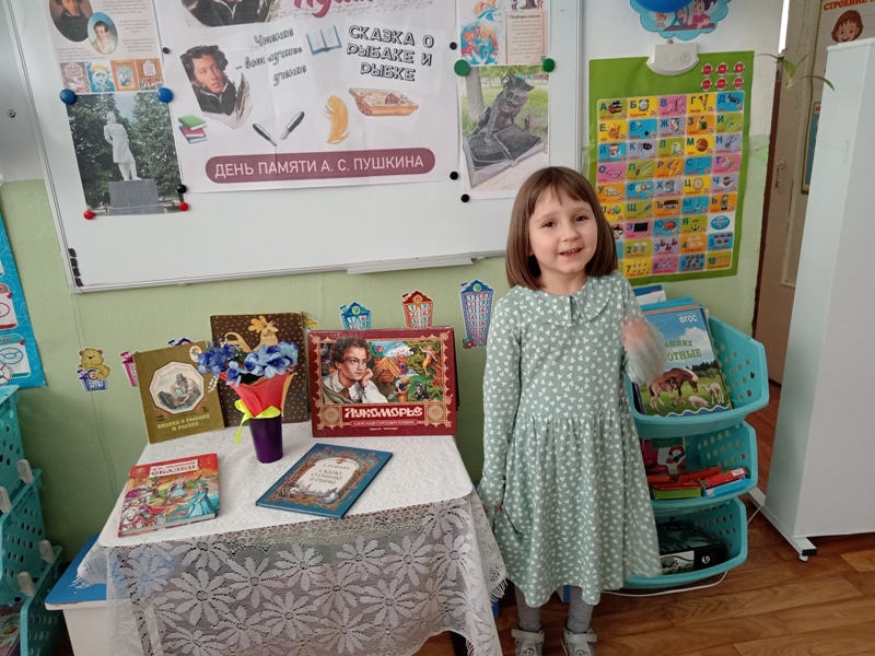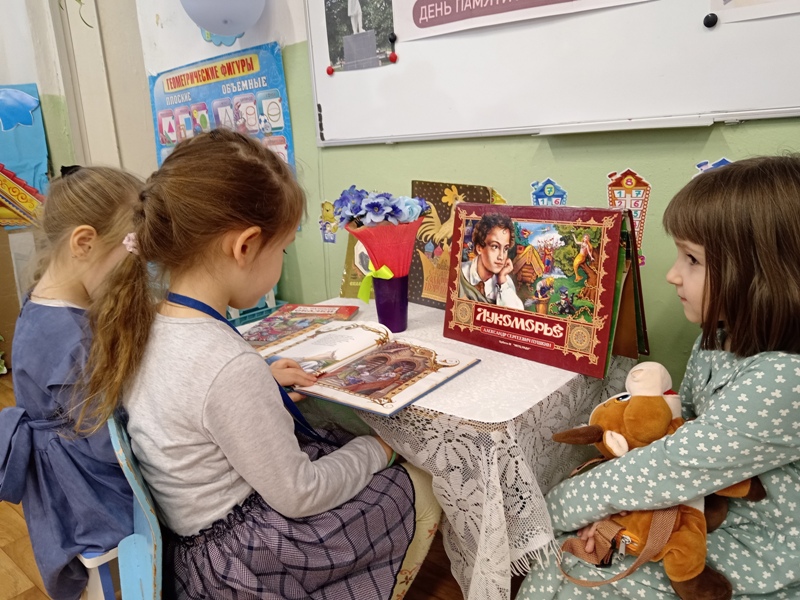 Сегодня в старшей группе "Колокольчик" прошел познавательный день, посвященный памяти великого русского поэта. Ребята вспоминали прочитанные ими ранее сказки, такие как "Сказка о рыбаке и рыбке", "Лукоморье", "Сказка о золотом петушке", с увлечением рассматривали иллюстрации в книгах, обсуждали сюжеты сказок, характер героев.